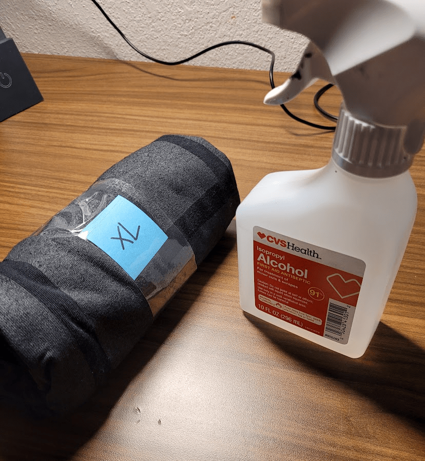 Unrelated: tour is glamorous! For example on returning to the hotel after soundcheck I enter my battle with The Shirts. The rubbing alcohol works, and the sticky residue is vanquished! The downside? After doing five my wrist is in absolute agony, so while itโs great to know these backup designs are salvageable, I am very much okay with not being the person cleaning up the rest of them. Thereโs band shirts hanging to dry across several surfaces and the smell of rubbing alcohol is, to me, verging on overpowering. Thankfully it doesnโt linger long!