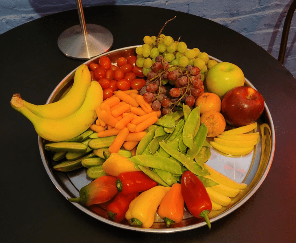 Before we leave, Pax calls me into the green room to show off their veggie and fruit tray โArtists only,โ he says before I take a few slices of pear.
