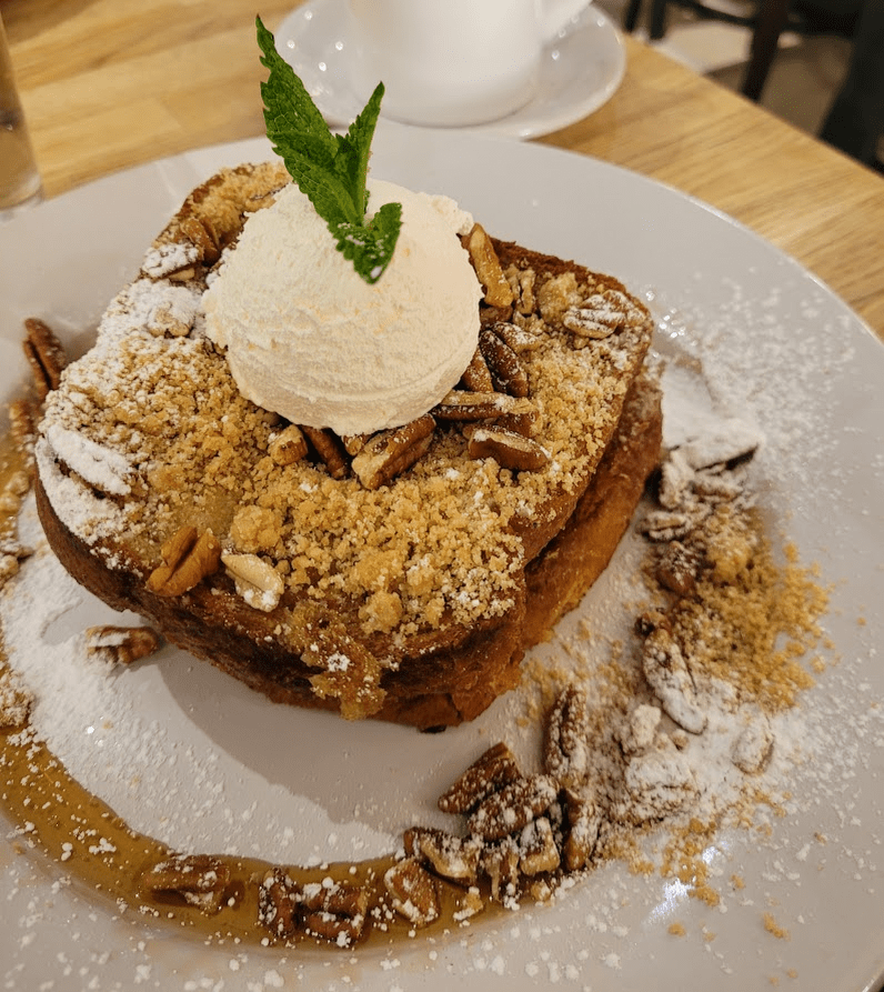 Flo takes off earlier in the night as she’s a busy lady, and one of the only people I know whose social calendar makes mine look empty which, to people who know me personally, is terrifying. We agree to meet for breakfast in the morning and the initial plan is to go to iHop because I’ve never been, but we wind up going to Green Eggs Cafe (Pax approves of my not-iHop decision). If you’re in Philly – and especially if you’re vegan or have a dairy allergy like mine – I recommend this place, their pecan pie french toast was astoundingly good. I would go back to Philly just to eat there again, and I’m saying this being from a city known for having good food. They are cash only, which we only discovered on arrival, but there’s an ATM on site with less ridiculous fees than what I’m used to seeing in Canada.